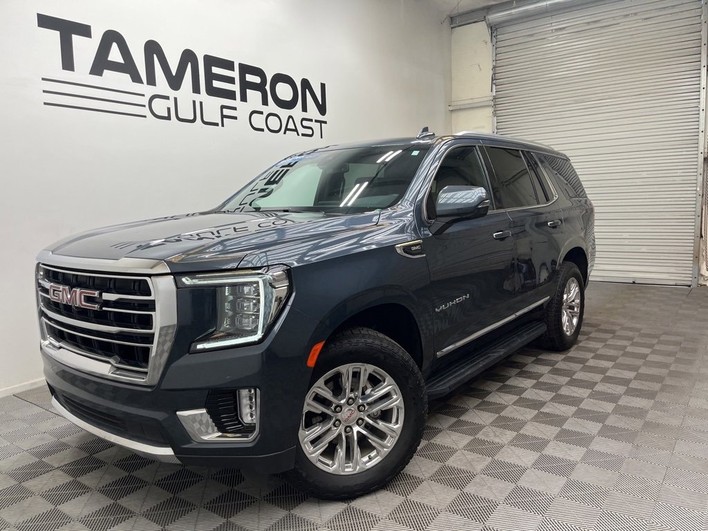 Certified. Dark Sky Metallic 2021 GMC Yukon SLT RWD 10-Speed Automatic with Overdrive EcoTec3 5.3L V8