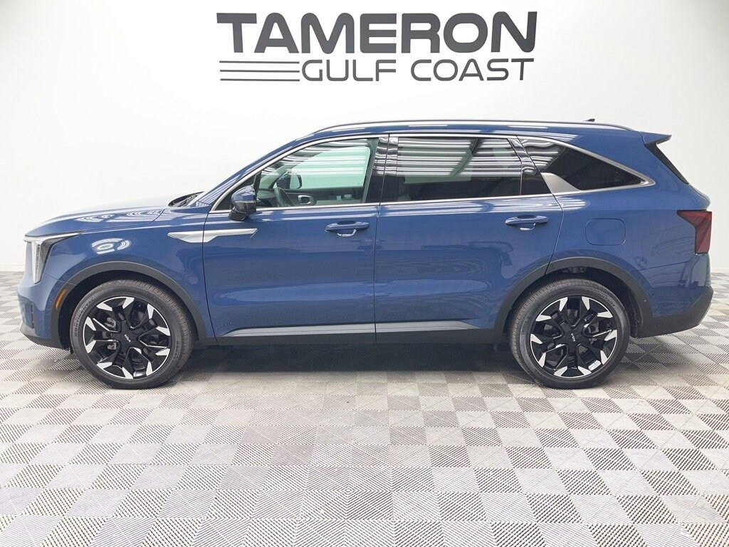 Midnight Lake Blue 2025 Kia Sorento SX FWD 8 Speed Dual Clutch 2.5L I4 DGI Turbocharged DOHC 16V LEV3-SULEV30 281hpRecent Arrival! 20/29 City/Highway MPG PANORAMIC ROOF 3RD ROW COOLED FRONT SEATS 8 WAY DRIVER SEAT