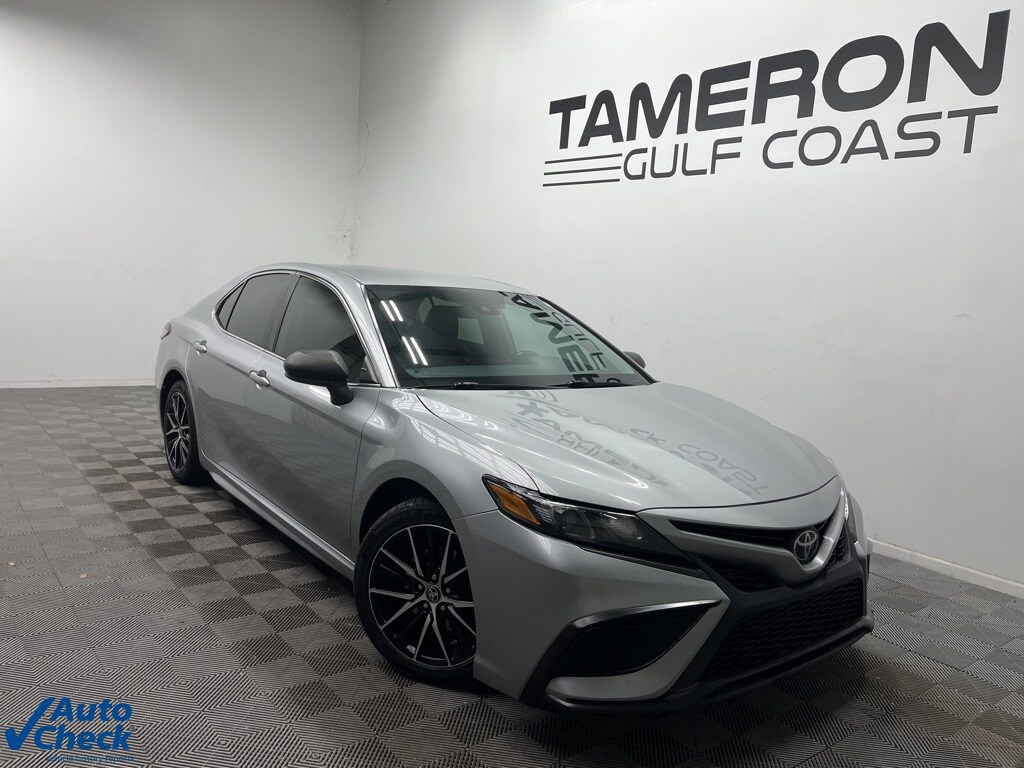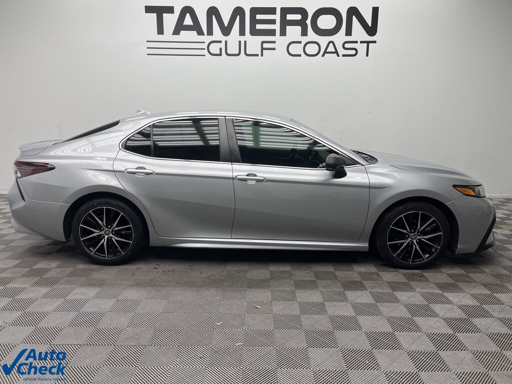 Silver 2021 Toyota Camry SE FWD 8-Speed Automatic 2.5L I4 DOHC 16V Cloth, ABS brakes, Active Cruise Control, Alloy wheels, Electronic Stability Control, Illuminated entry, Low tire pressure warning, Remote keyless entry, Traction control.